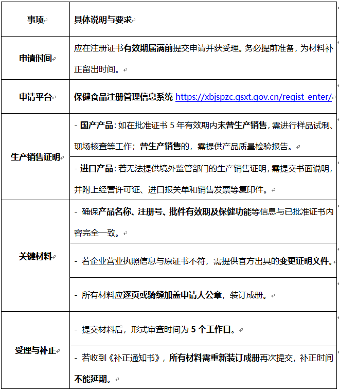 总的来说,顺利完成保健食品再注册,关键在于三点:
